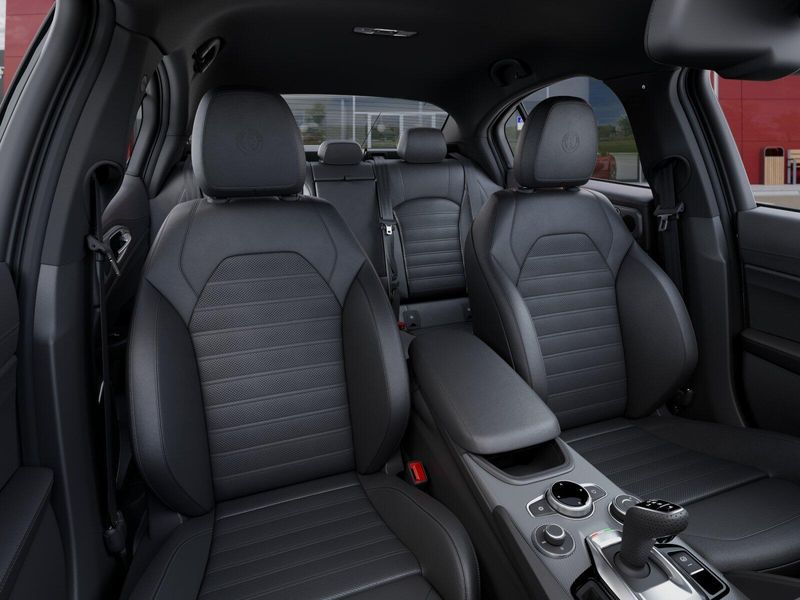 In keeping with the dash and door panel leather, the upholstery and Alcantara seats are made of leather and carbon fiber with aluminum accents, respectively. The Alfa Romeo Stelvio boasts an infotainment system with an 8.8-inch touchscreen that allows smartphone charging, Android Auto, and Apple CarPlay. The Alfa Romeo Stelvio boasts several driving-assistance and convenience features, including active blind-spot monitoring, lane maintenance aid, warnings for driver attention, and highway and traffic jam assistance to keep you safe while you’re on the road.